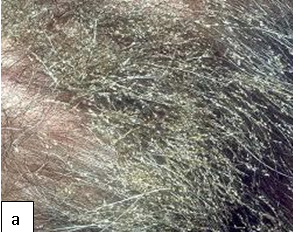 Diagnosis: Clinical diagnosis can be made but definitive diagnosis is made by microscopic identification of mites, eggs, or mite faeces (scybala) from skin scrapings.