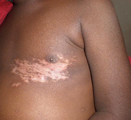 Clinical presentation: A characteristic combination of plane warts, pityriasis versicolor-like lesions and reddish plaques.
