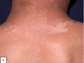 Treatment: Selenium sulphide in a detergent base, available as shampoo or lotion in 1% or 2.5% concentrations (Selsun® shampoo Blue, Head & shoulders), applied to all the affected areas and left for 10 minutes before washing off or left overnight. In ordinary cases that settle spontaneously or as a result of treatment, the residual depigmentation may remain for many months without any scaling.