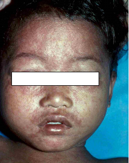 Other congenital infections (toxoplasmosis, rubella, cytomegalovirus, herpes simplex virus, neonatal sepsis), and other causes of neonatal hepatitis, hydrops fetalis, long-bone abnormalities, and cutaneous scaly lesions.