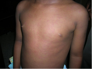 Early congenital syphilis (≤2 years): Hepatosplenomegaly, jaundice, mucocutaneous lesions (e.g., skin rash, nasal discharge, mucous patches, condylomata lata), lymphadenopathy, pseudoparalysis of an extremity, haematological abnormalities (anaemia, thrombocytopenia), pneumonia, and skeletal lesions (e.g. osteochondritis, periostitis, or osteitis). Fever, nephrotic syndrome, ophthalmologic manifestations may also occur.