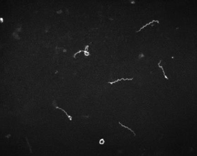 Laboratory diagnosis:Definitive diagnosis is by dark field microscopy performed on body fluids (e.g., nasal discharge) or moist skin lesions demonstrating thin, delicate, corkscrew-shaped organisms with rigid, tightly wound spirals. Failure to identify spirochetes with dark field microscopy does not exclude the diagnosis of syphilis.