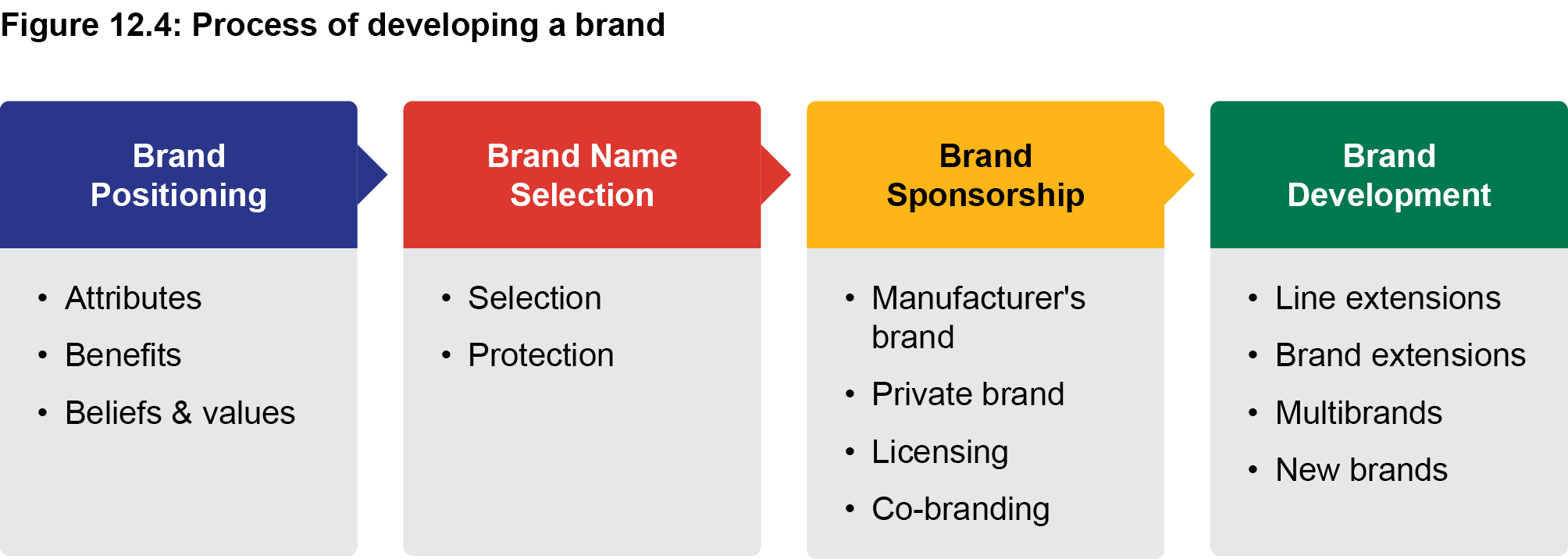 In order to develop a brand from the beginning, there is a general process that involves four steps: brand positioning, brand name selection, brand sponsorship and brand development (Figure 12.4). Each of these steps is described below.