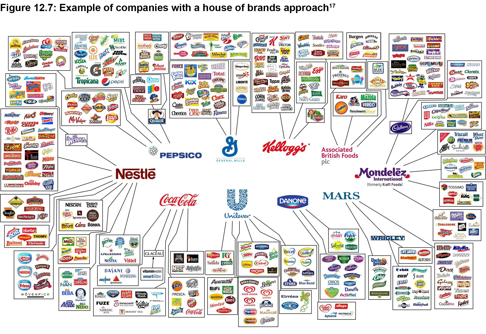 A house of brands as a collection of individual free-standing brands that have a separate identity from their parent company. These brands have names, lifecycles, personalities of their own and often compete with each other within the same company and sometimes within the same category. This is called a portfolio of brands and necessitates a portfolio strategy, so that each brand has a clearly demarcated position. Examples of this are often found in fast-moving consumer goods (FMCG) companies, like Unilever, which has Omo, Surf, and Sunlight, all in the detergent category. It is said that ten food companies account for almost all the branded food products in the world.[16]