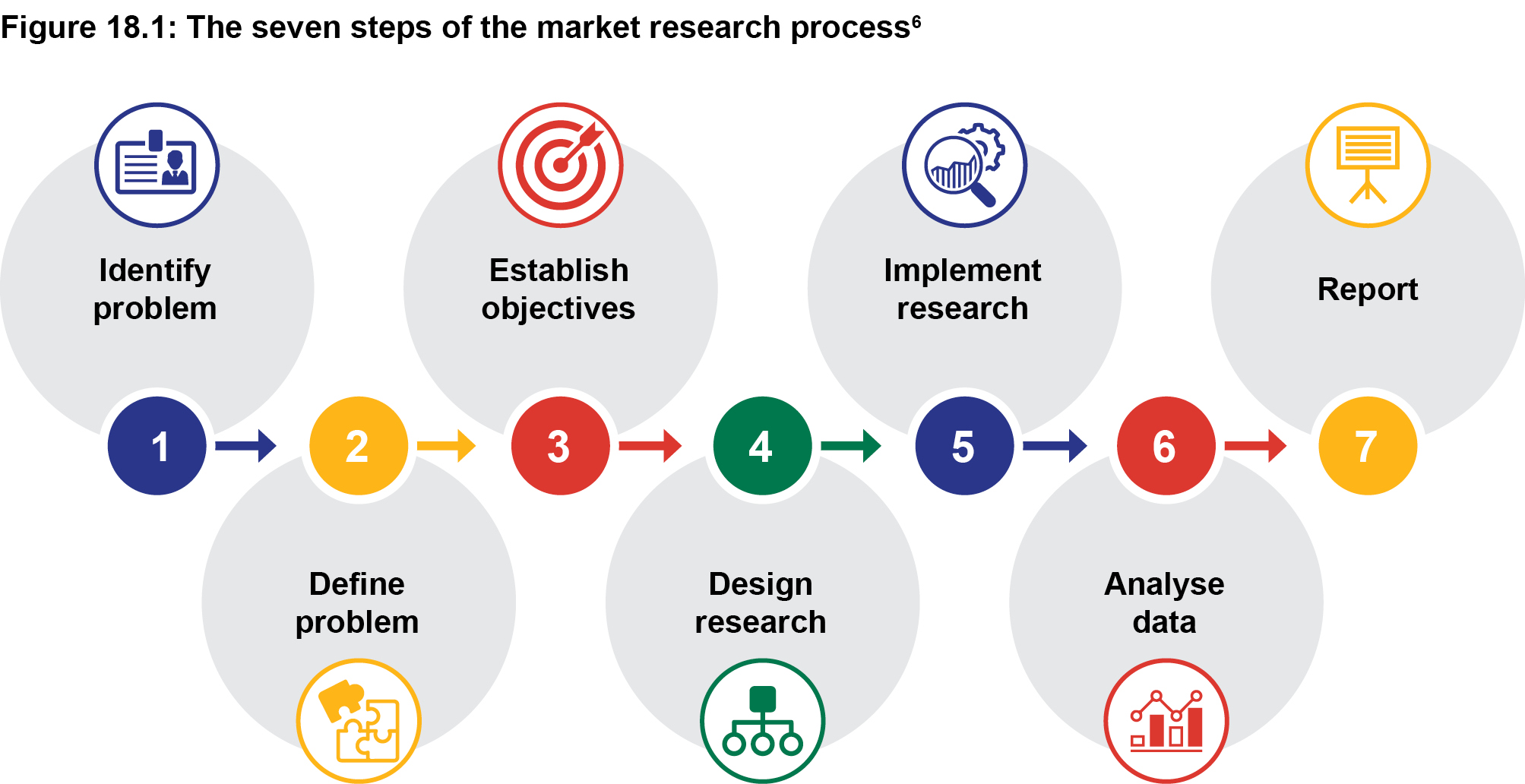 Research planning occurs throughout the project, and there are various factors that determine how market research budgets are allocated, including company policy, organisational structure and the type of research required. As shown in Figure 18.1, there are several steps in the market research process, but there is no set method for carrying out this process.