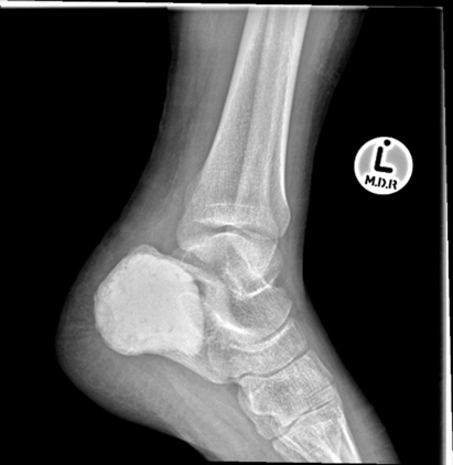 Curretage and bone grafting. The above images show an aneurysmal bone cyst of the left calcaneus. This is represented by a lytic process that looks soap bubbly on the initial X-rays. Because the patient is young and it is a benign lesion, a curettage and bone grafting has been performed. The series of X-rays following the bone grafting show the body’s incorporation of the graft, replacing it with the patient’s own bone.