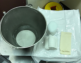 Soak the plaster roll in the bucket of water until bubbles cease to rise, remove from the water and gently squeeze the excess water from the roll, without drying it thoroughly.