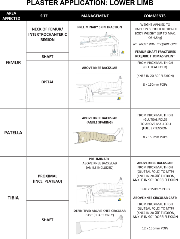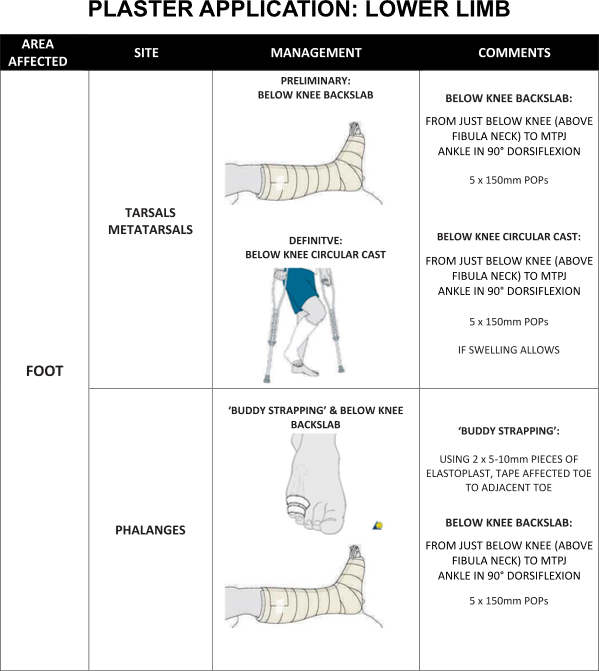 - Understand what the basic set of upper and lower limb casts are and when to apply them.