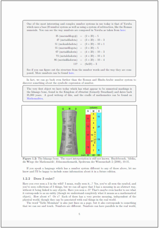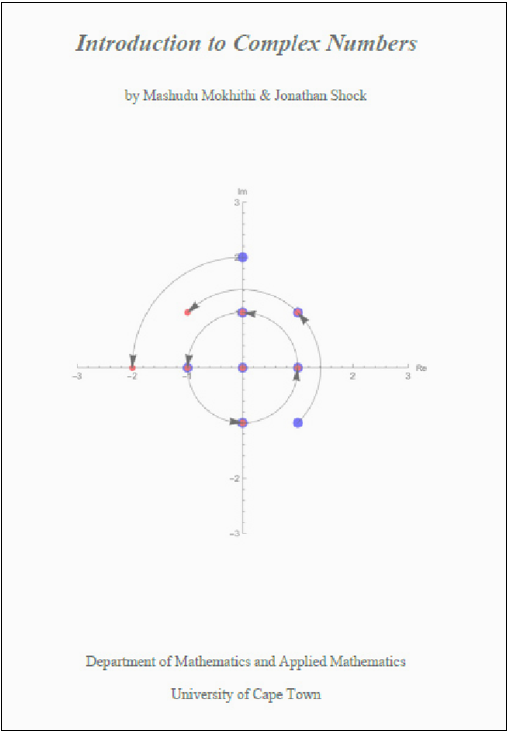 In developing the ‘Introduction to Complex Numbers’ chapter, Jonathan wrote up a LaTeX [3] document relating some of the basic ideas of what university mathematics encompassed, and then co-authored (with colleague Mashudu Mokhithi) notes on complex numbers which included discussion of issues relating to languages and number systems around the world. Following this, one of the students put the notes into PreTeXt so that they could be converted into PDF and HTML.
